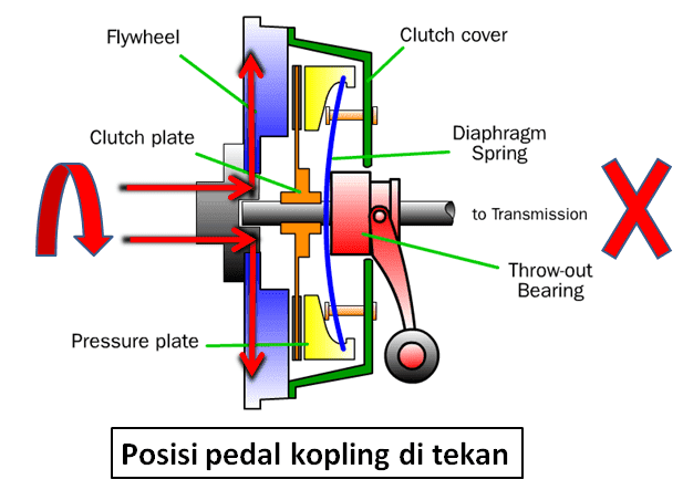 Poros pemindah gigi b. Cara kerja kopling pada umumnya mobil dapat dibagi menjadi dua bagian yaitu. Cara kerja kopling saat pedal kopling diinjak. Hal ini menyebabkan constant pressure chamber dan variable pressure chamber tidak terhubung.