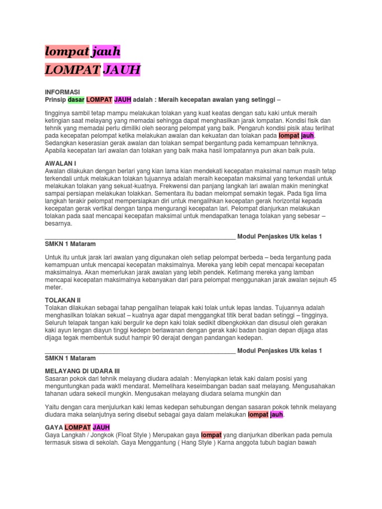 Gunakan kaki yang paling kuat sebagai tumpuan. Kaki kanan menolak dan melonjak agar tenaga yang cukup besar untuk mendorong peluru seluruhnya berada di tangan kanan yang memegang peluru. Semoga apa yang admin bagikan kali ini dapat membantu anak didik dalam mencari referensi tentang contoh soal lompat jauh dilengkapi dengan kunci jawaban. Setelah itu lontarkan peluru dengan sudut dolakan 40 derajat ke arah atas.