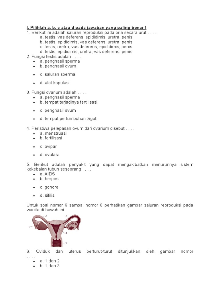 Berikut ini merupakan daftar penyakit dan gangguan sistem pencernaan yang umum terjadi pada banyak orang. Organ kelamin luar wanita memiliki 2 fungsi yaitu sebagai jalan masuk spermake dalam tubuh wanita dan sebagai pelindung organ kelamin dalam dari organisme penyebab infeksi saluran kelamin wanita memiliki lubang yang berhubungan dengan dunia luar sehingga mikroorganisme penyebab penyakit bisa masuk dan menyebabkan infeksi kandungan. Epididimis merupakan bagian yang terletak setelah testis hasil spermatogenesis yang berupa spermatozoa akan disimpan sementara didalam epididimis sebelum dikeluarkan dari tubuh melalui saluran sperma dan keluar lewat uretra urutan jalannya sel sperma dari bagian sistem reproduksi laki laki adalah testis epididimis vas deferens uretra. Mikroorganisme ini biasanya ditularkan melalui hubungan seksual.