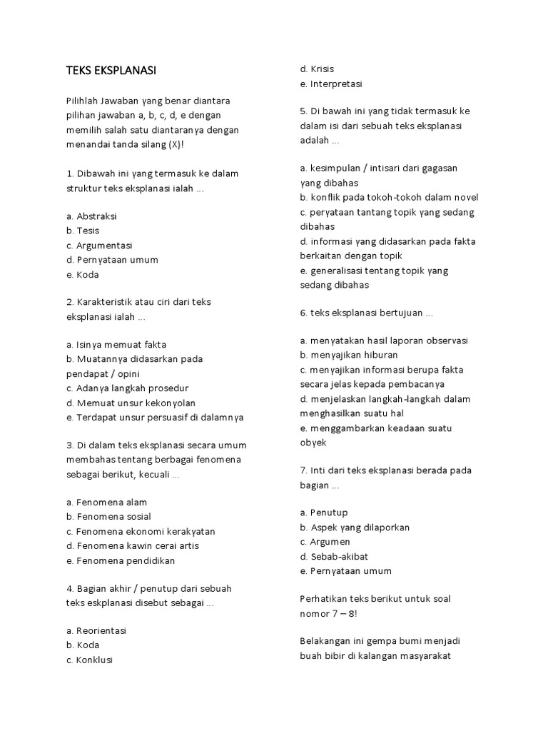 Peryataan tantang topik yang. Di bawah ini yang tidak termasuk ke dalam isi dari sebuah teks eksplanasi adalah a. Bagian akhir penutup dari sebuah teks eskplanasi disebut sebagai a. Kesimpulan intisari dari gagasan yang dibahas b.