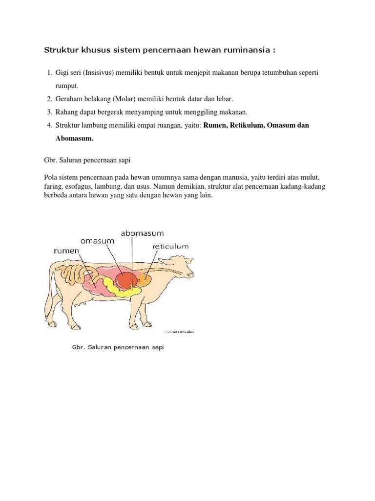 Esofagus Hewan Ruminansia Umumnya Berukuran Sangat Pendek Yaitu Sekitar