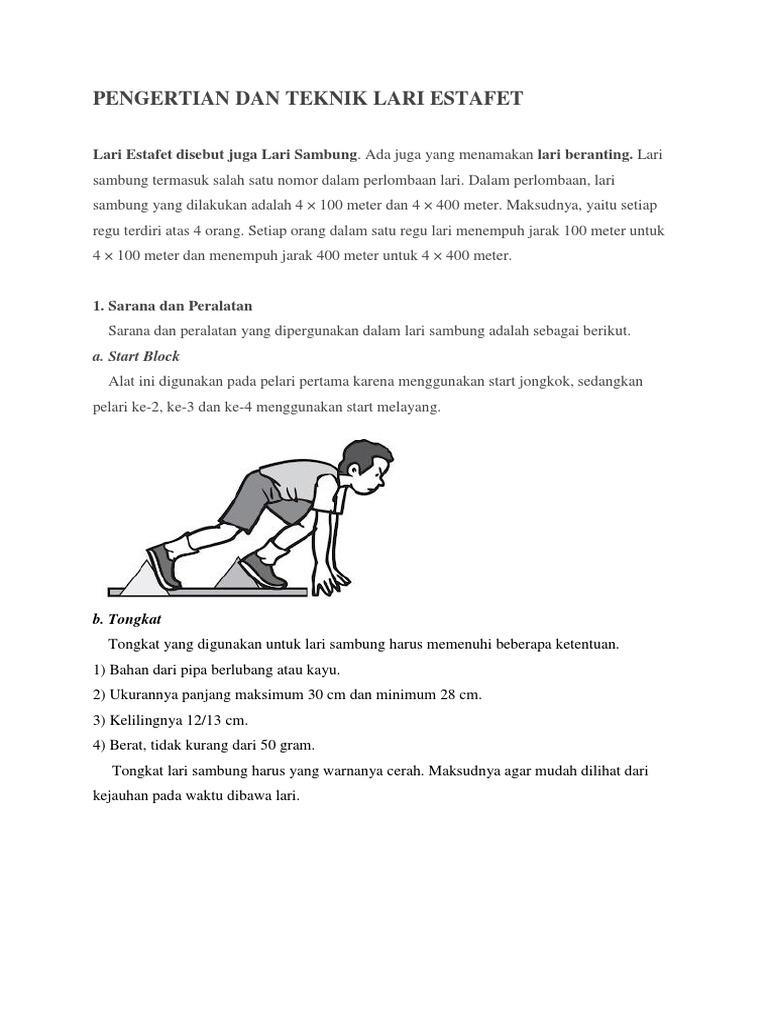 Jarak penerimaan tongkat dalam perlombaan lari sambung yaitu. Jarak penerimaan tongkat dalam perlombaan lari sambung yaitu 15047631. 2 5 peraturan perlombaan lari sambung estafet 2 5 1 peratuan perlombaan a. Dalam satu regu lari sambung terdapat empat orang pelari yaitu pelari pertama kedua ketiga dan keempat. Keempat jari terbuka kea rah dalam tongkat diberikan dengan ayunan dari bawah ke atas.
