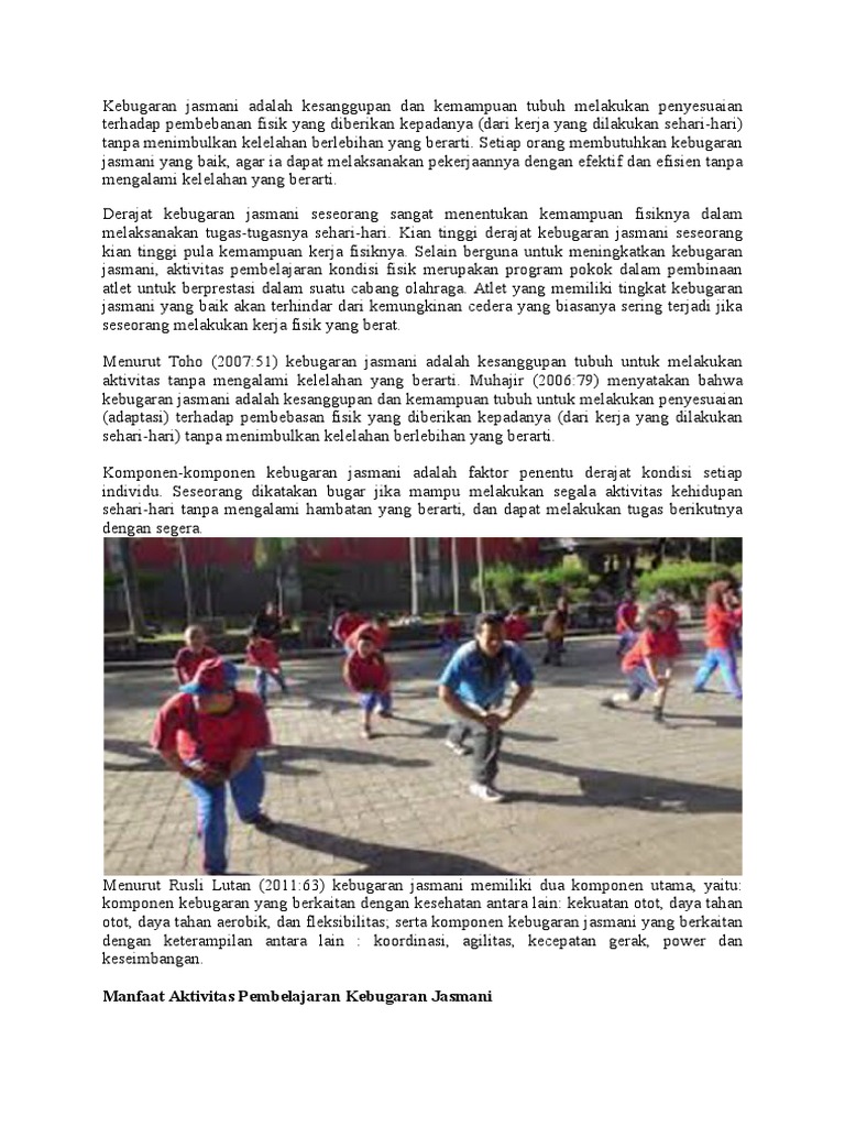 Menurut agus mukholid 2. Kesanggupan dan kemampuan tubuh melakukakan penyesuaian terhadap pembebasan fisik yang diberikan kepadanya dari kerja yang dilakukan sehari hari tanpa menimbulkan kelelahan berlebihan disebut. Kemampuan tubuh melakukan penyesuaian terhadap pembebasan fisik yang diberikan kepadanya dari kerja yang dilakukan sehari hari tanpa menimbulkan kelelahan yang berlebihan yang berarti disebut. Kebugaran jasmani adalah suatu kesanggupan dan kemampuan tubuh dalam melakukan penyesuaian terhadap pembebanan fisik yang diberikan kepadanya terutama dalam melakukan aktivitas sehari hari tanpa menimbulkan kelelahan yang berlebihan.