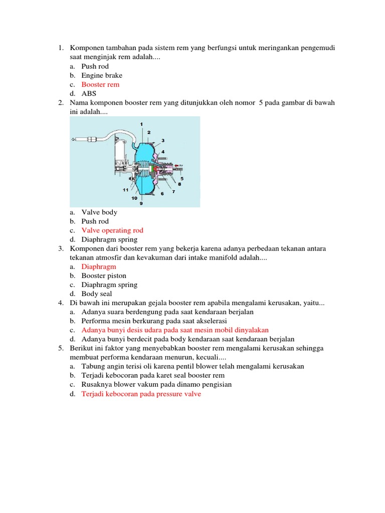 Komponen tambahan pada sistem rem yang berfungsi untuk meringankan pengemudi saat menginjak rem adalah. A booster rem b engine brake c sepatu rem d push rod e abs. Boster rem merupakan perangkat tambahan pada sistem rem yang berfungsi untuk meringankan pengemudi saat menginjak pedal rem. Pada mobil kaliper akan dihubungkan ke steering knuckle. Namun bentuk kaliper tidak memungkinkan untuk di hubungkan secara langsung.
