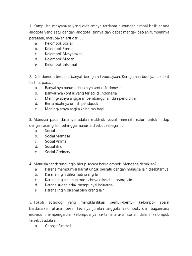 Kelompok juga dapat memengaruhi perilaku para anggotanya. Kesadaran pada setiap anggota kelompok bahwa dia merupakan sebagian dari kelompok yang bersangkutan 2 adanya hubungan timbal balik antara anggota yang satu dengan anggota yang lain 3 adanya faktor yang dimiliki bersama sehingga hubungan antara mereka bertambah erat yang dapat merupakan nasib yang sama. Terdapat hubungan timbal balik antar anggota. Soal kelompok sosial draft.