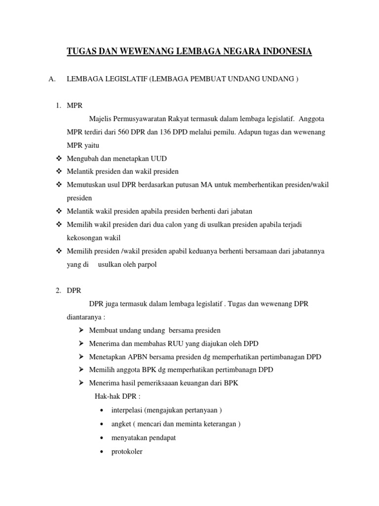Anggota dpr berasal dari anggota partai politik peserta pemilu yang dipilih berdasarkan hasil pemilu. Dpr berkedudukan di tingkat pusat sedangkan yang berada di tingkat provinsi disebut dprd provinsi dan yang berada di kabupaten kota disebut dprd kabupaten kota 1. Memutus perselisihan tentang hasil pemilihan umum pasal 24c ayat 1 uud 1945. Memutus sengketa kewenangan lembaga negara yang kewenangannya diberikan oleh uud negara republik indonesia tahun 1945.