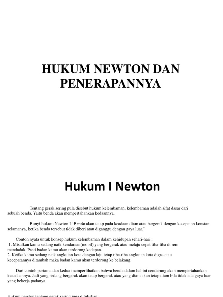 Artinya pertama hukum ini tidak dapat dibuktikan dari prinsip prinsip lain kedua hukum ini memungkinkan kita agar dapat memahami jenis gerak yang paling umum yang merupakan dasar mekanika klasik. Benda jatuh dari atas kebawah atau perpindahan benda dari suatu titik ke titik lain dapat di artikan bahwa benda itu. Hukum gerak newton adalah hukum sains yang ditentukan oleh sir isaac newton mengenai sifat gerak benda hukum gerak newton itu sendiri merupakan hukum yang fundamental. Rumus hukum newton 3.