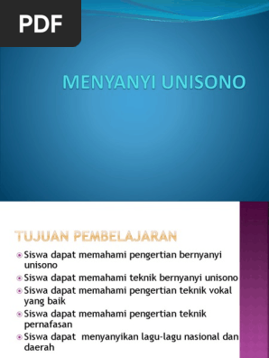 Pengertian teknik vocal dan pernafasan dalam bernyanyi unisono bagaimanakah teknik barnyanyi secara unison. Pengertian bernyanyi secara unisono bernyanyi atau menyanyi yang dalam bahasa inggris disebut singing arti dari kata ini adalah tindakan vokal untuk menghasilkan hal musikal dengan memakai suara. Tuliskan apa yg dimaksud dengan artikulasi phrasering dn intonasi 4. Bernyanyi berbeda dengan berbicara karena dalam bernyanyi diperlukan metode tertentu sedang berbicara tak memerlukan metode atau teknik tertentu.
