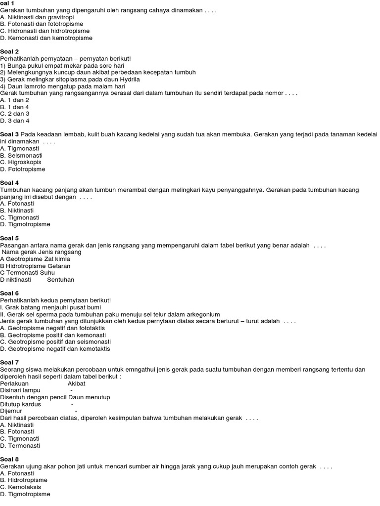 2 dan 3 d. Laporan pertumbuhan kacang hijau dengan media kapas dan tanah. 1 dan 2 b. Proses tumbuh dari tumbuhan juga merupakan gerak pada tumbuhan.