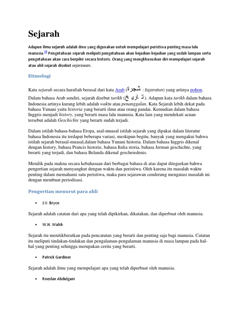 Dalam bahasa inggris history bahasa yunani istoria bahasa jerman geschicht.