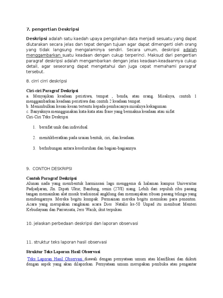 Anggota aspek yang dilaporkan merupakan bahasan atau rincian tentang objek yang diamati. Contoh pernyataan umum pernyataan umum adalah bagian dari teks yang sering kita temukan dalam bahasa indonesia. Keberadaan bagian ini sifatnya opsional bukan sebuah kewajiban. Teks tersebut memberikan penjelasan.