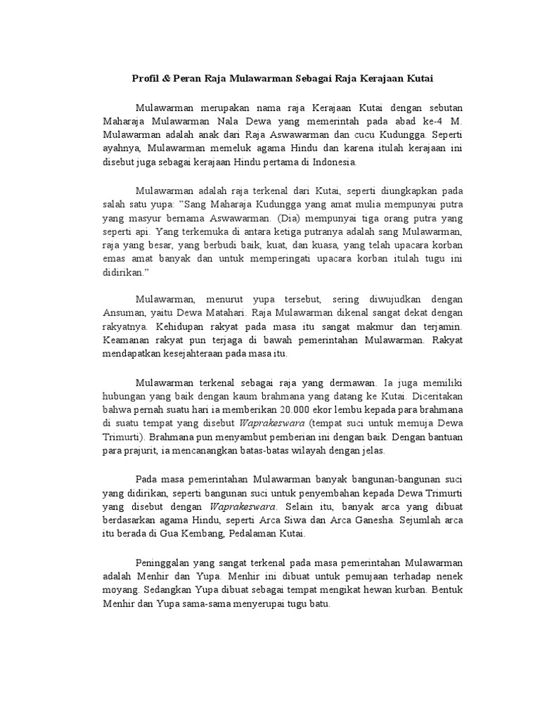 Raja raja dan para bangsawan yang pertama kali menganut agama ini kemudian membangun kerajaan kerajaan yang bercorak hindu budha seperti kerajaan kutai yang terletak di kalimantan timur kerajaan tarumanegara di jawa barat kerajaan holing kerajaan melayu di sumatra selatan dan berpusat di jambi kerajaan sriwijaya kerajaan mataram kuno. Ia memerintah sekitar abad ke 9 m. Hal ini kemudian melahirkan persepsi para ahli bahwa pada masa kekuasaan raja kudungga pengaruh hindu baru masuk ke nusantara kedudukan kudungga pada awalnya. Raja raja yang paling terkenal dari kerajaan kutai adalah.
