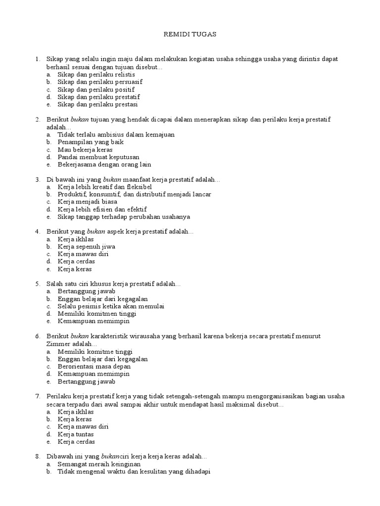 Perilaku kerja prestatif dimulai dari lingkungan keluarga lingkungan sekolah maupun lingkungan masyarakat. Terjawab salah satu ciri khusus kerja prestatif adalah 1 lihat jawaban. Nabcsinital nabcsinital 25 03 2017 wirausaha sekolah menengah pertama 5 poin. Enggan belajar dari kegagalan c.