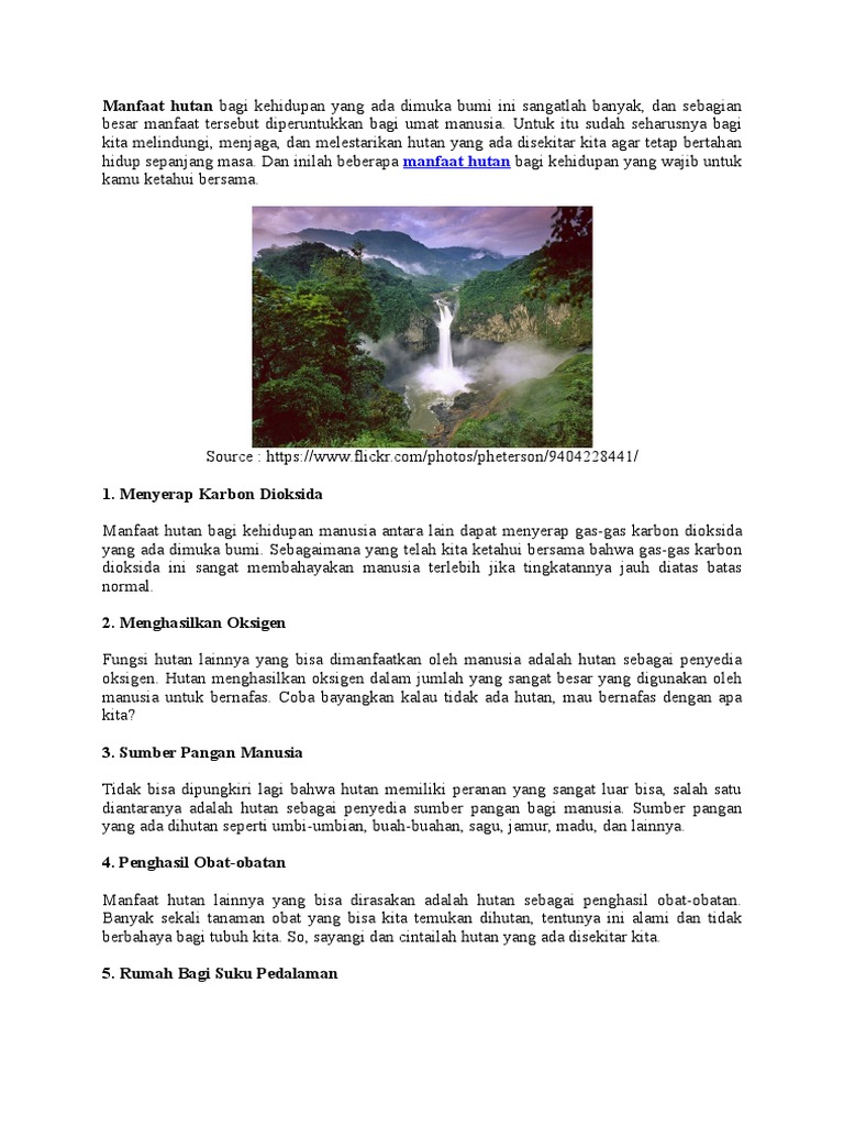 Salah satu manfaat hutan yaitu menghasilkan oksigen dan menyerap karbondioksida sehingga. Maksudnya hutan menghasilkan oksigen dan menyerap karbondioksida. Hutan mangrove mengurangi dampak tsunami melalui dua cara yaitu. Salah satu manfaat hutan yang bisa kita rasakan adalah hutan sebagai sumber ekonomi. Kecepatan air berkurang karena pergesekan dengan hutan mangrove yang lebat dan volume air dari gelombang tsunami yang sampai ke daratan menjadi sedikit karena air tersebar ke banyak saluran kanal yang terdapat di ekosistem mangrove.