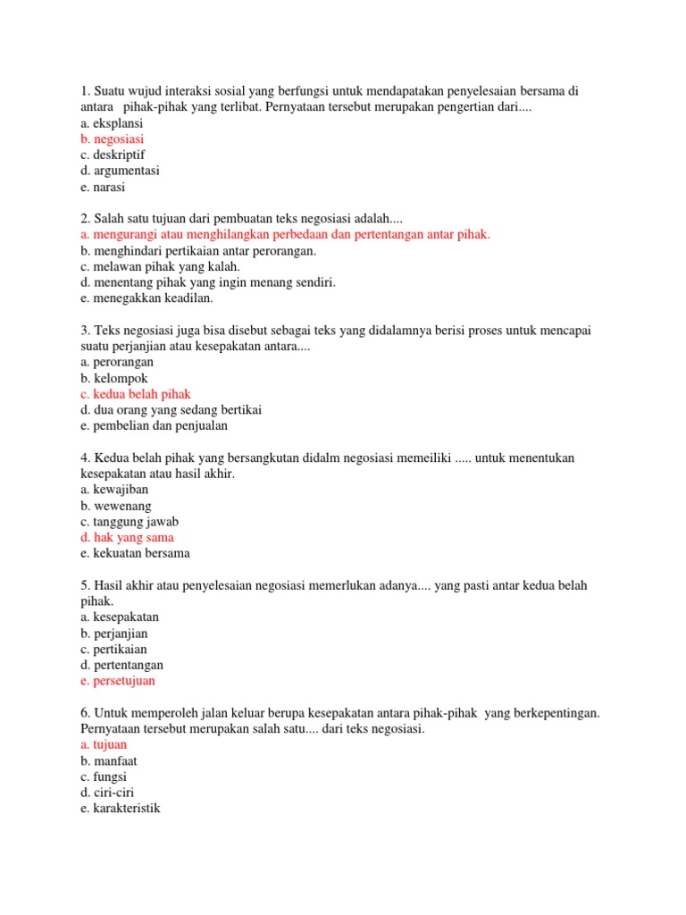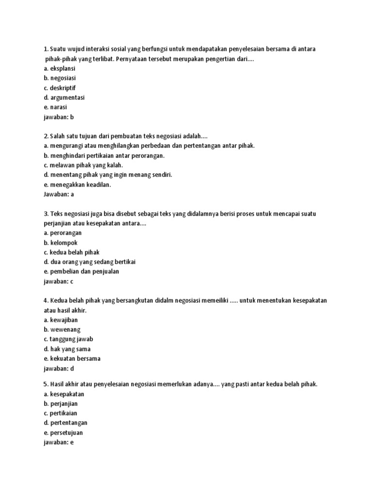 Salah satu yang harus ada dalam teks negosiasi adalah bagian. Indonesia sekolah menengah pertama 5 pts. Mengurangi atau menghilangkan perbedaan dan pertentangan antarpihak. Pada bagian pembuka teks negosiasi biasanya berisi pengenalan diri.
