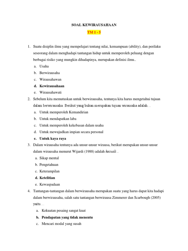 1 untuk mewujudkan kemampuan dan kemantapan para wirausaha untuk. Peluang usaha yang telah di ambil tentu akan terdapat konsekuensi oleh pengambil keputusan itu. Sedangkan menurut seorang ahli yang bernama zimmerer karakteristik seorang wirausaha yang berhasil karena bekerja prestatfi adalah sebagai berikut. 104 seorang wirausaha harus mampu melihat peluang dan dapat mencari solusi adalah contoh dan perilaku wirausaha.