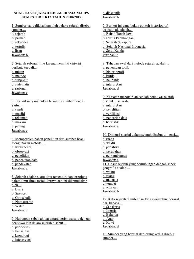 Pendapat tersebut dikemukakan oleh. Berikut di bawah ini contoh soal uas sejarah kelas x semester ganjil dengan jawabannya untuk siswa sma ma sederajat. Sumber yang hidup sezaman tetapi tidak mengalami pribadi kejadian sejarah disebut. Less strictly primary sources.