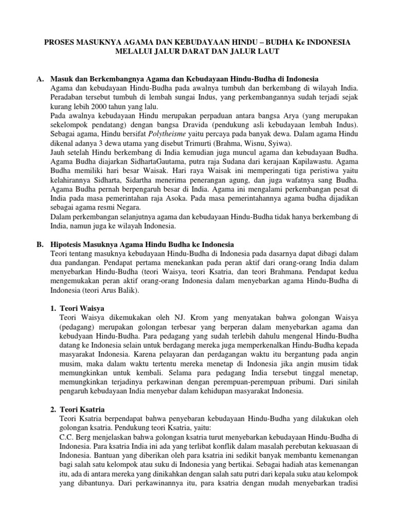 Selama ini belum ada ahli arkeolog yang dapat menemukan bukti bukti yang menunjukkan adanya ekspansi dari prajurit prajurit india ke kepulauan indonesia. Berikut 10 contoh soal lengkap dengan kunci jawabannya sebagai berikut. Namun teori ksatria yang dikemukakan oleh r c. Teori campuran teori ini beranggapan bahwa semua kasta bersama sama menyebar agama dan kebudayaan sesuai dengan peran masing masing.