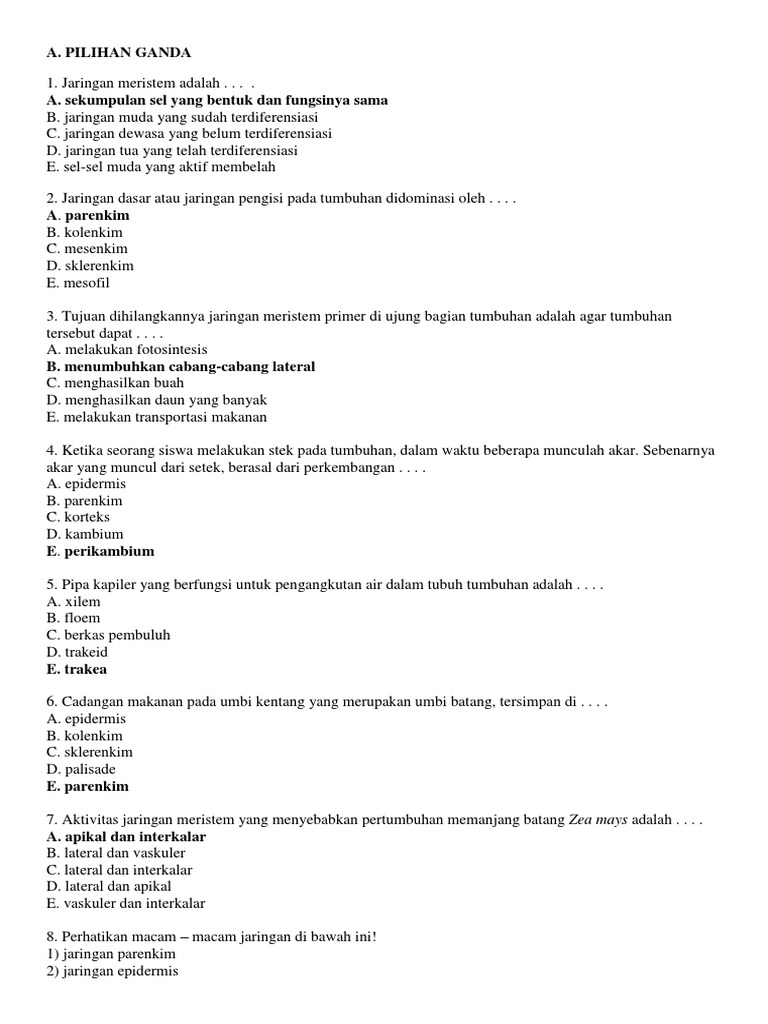Tujuan dihilangkannya jaringan meristem apikal pada tumbuhan adalah agar tumbuhan tersebut dapat menumbuhkan cabang literal. Pertumbuhan primer adalah pertumbuhan yang terjadi akibat aktivitas jaringan meristem primer atau disebut juga meristem apikal. Soal standar snmptn rambut akar pada tumbuhan terdapat di zona a. Jaringan meristem adalah jaringan yang sel selnya mampu membelah diri dengan cara mitosis secara terus menerus bersifat embrional untuk menambah jumlah sel sel tubuh pada tumbuhan.